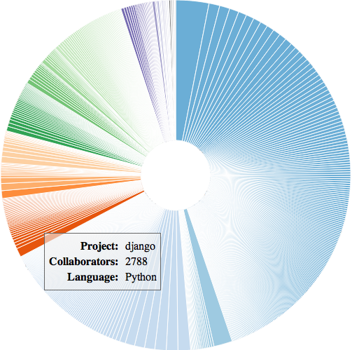 GitHub’s public timeline contains a wealth of knowledge about contributions to open source software from all over the world. It’s pretty typical to see over ten thousand contributions of some sort every hour! I decided to focus on the top 200 repositories (by forks) only in order to have a more manageable set of data. Each comment, pull request or commit is tied to a repository which in turn usually has a primary language associated with it. Contributions from folks who didn’t provide a location were ignored and OpenStreetMap’s Nominatim service was used to geocode locations into latitude and longitude for those who did say where they coding from.